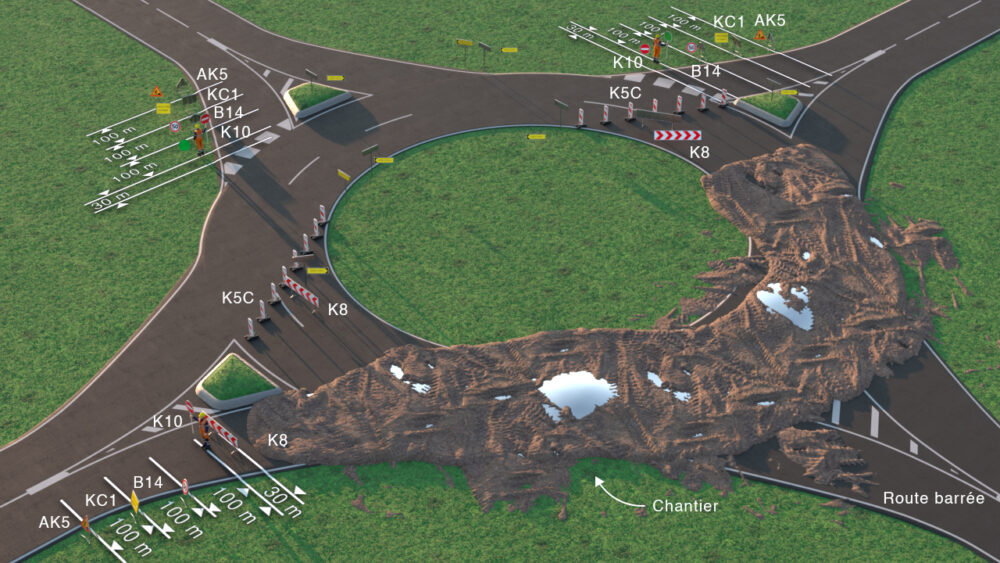 La signalisation de prescription, notamment de limitation de vitesse, peut éventuellement être supprimée si l’empiètement est très faible.