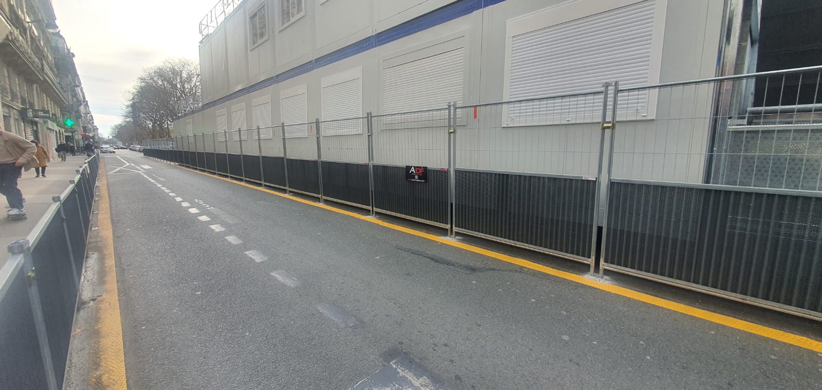Clôture conforme aux agréments délivrés par la Ville de Paris, permettant de délimiter et sécuriser vos emprises, tout en laissant une visibilité à votre chantier afin de travailler en toute sécurité.