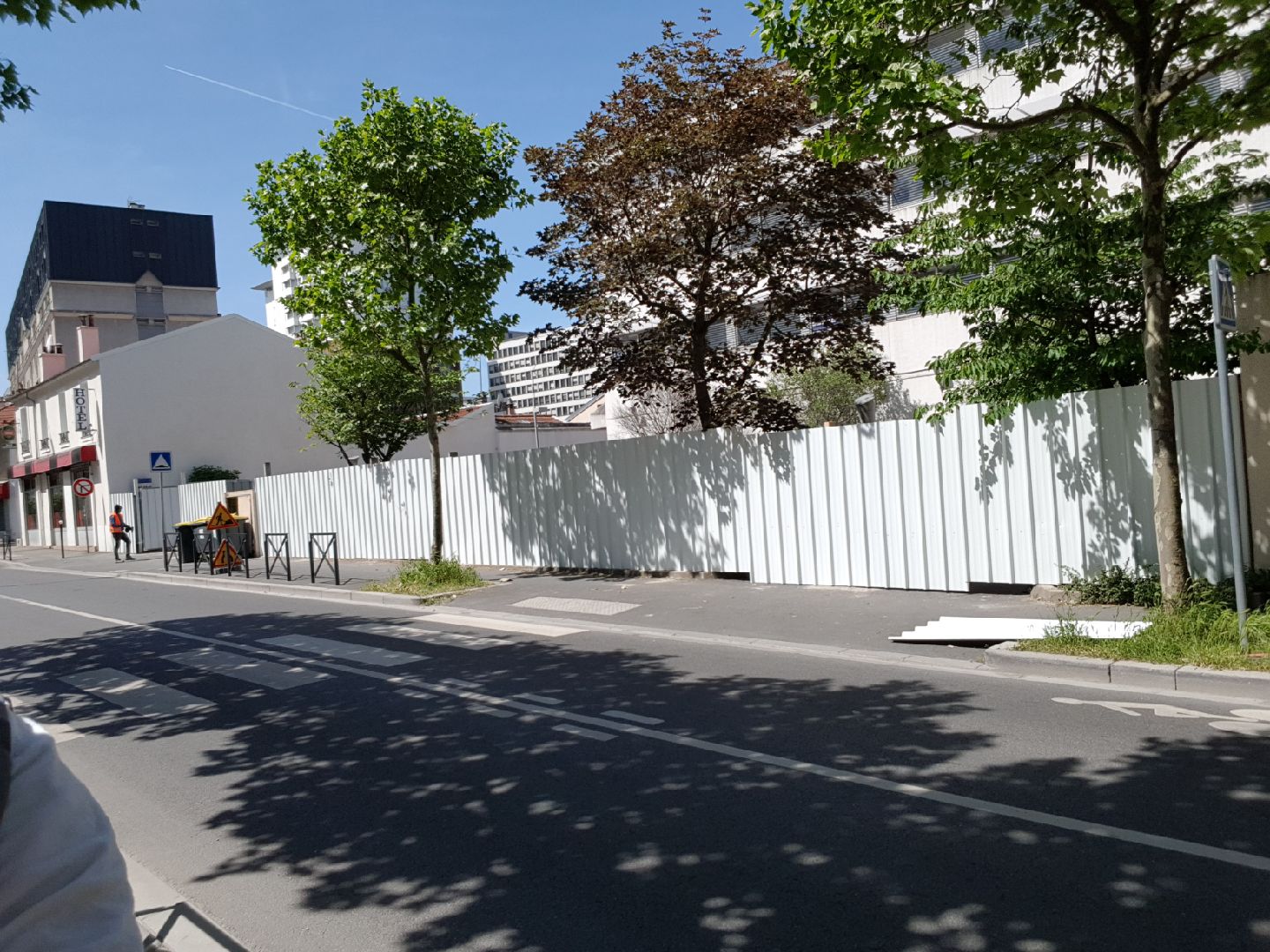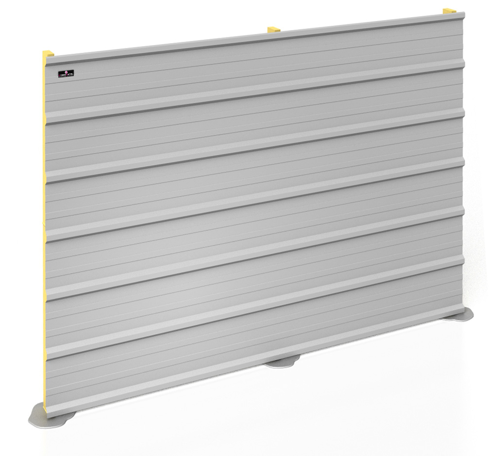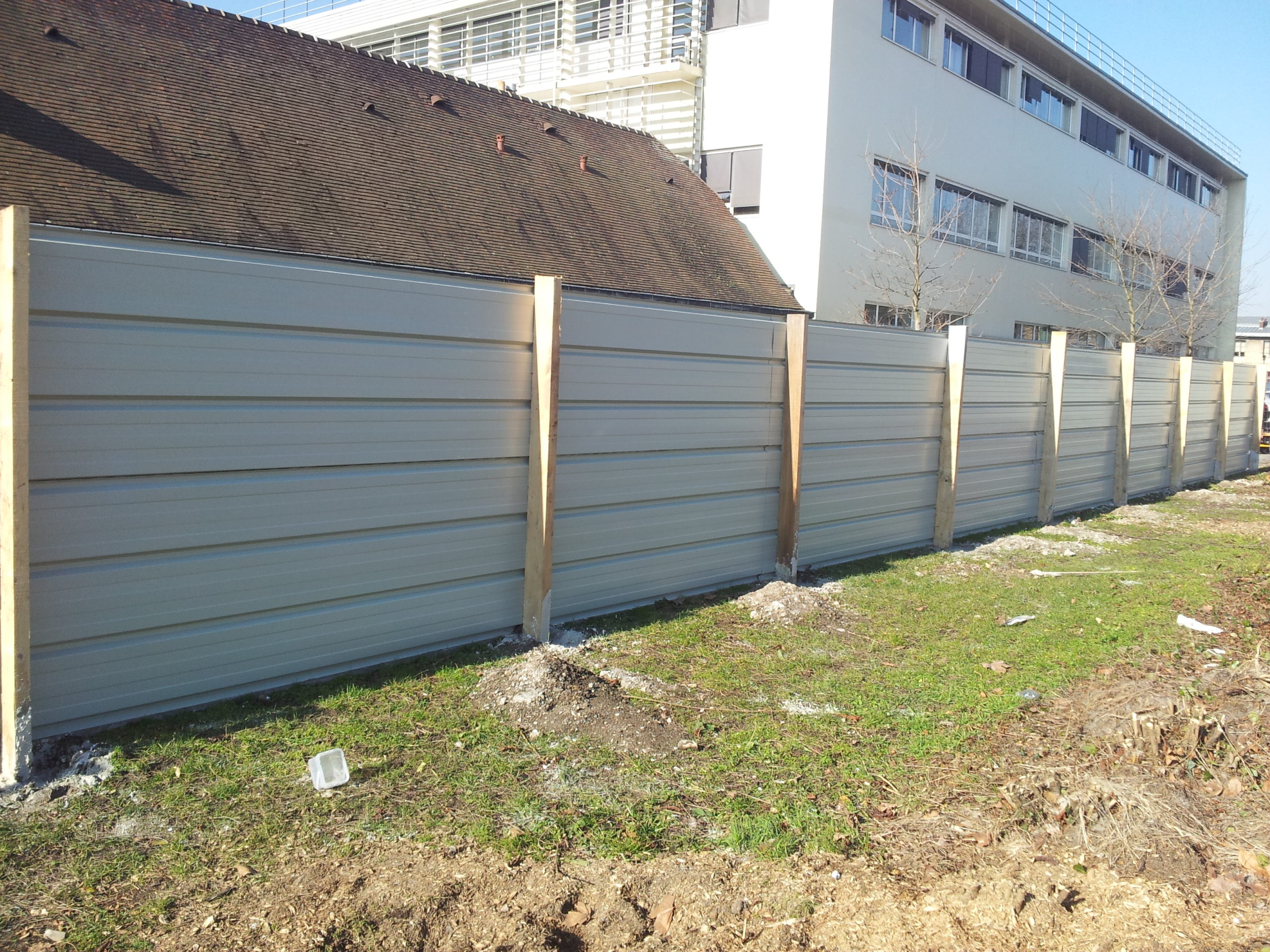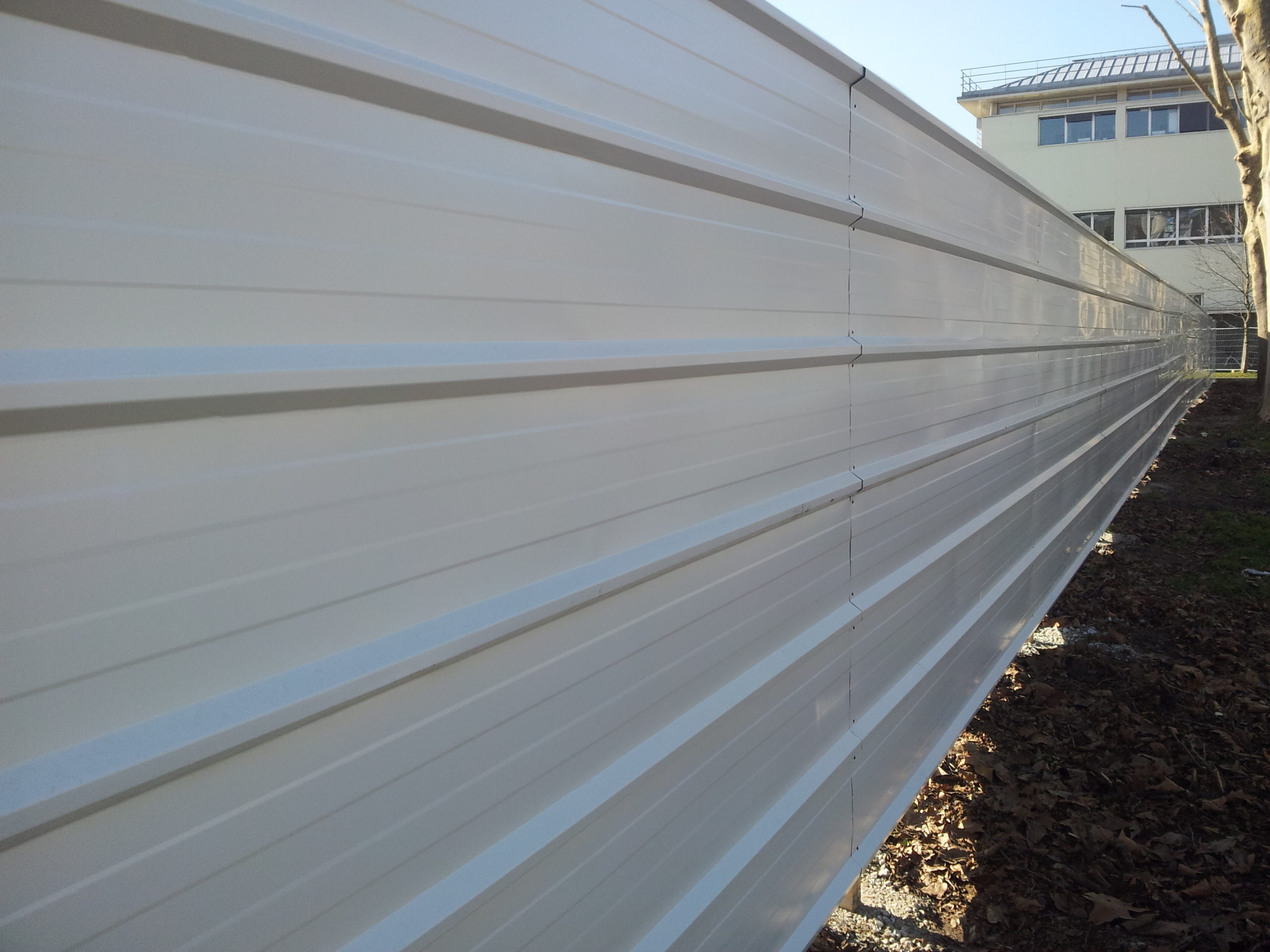 Bardage type « Bac Acier », conçu pour les chantiers de longue durée, et prévu pour être démonté à leur terme.